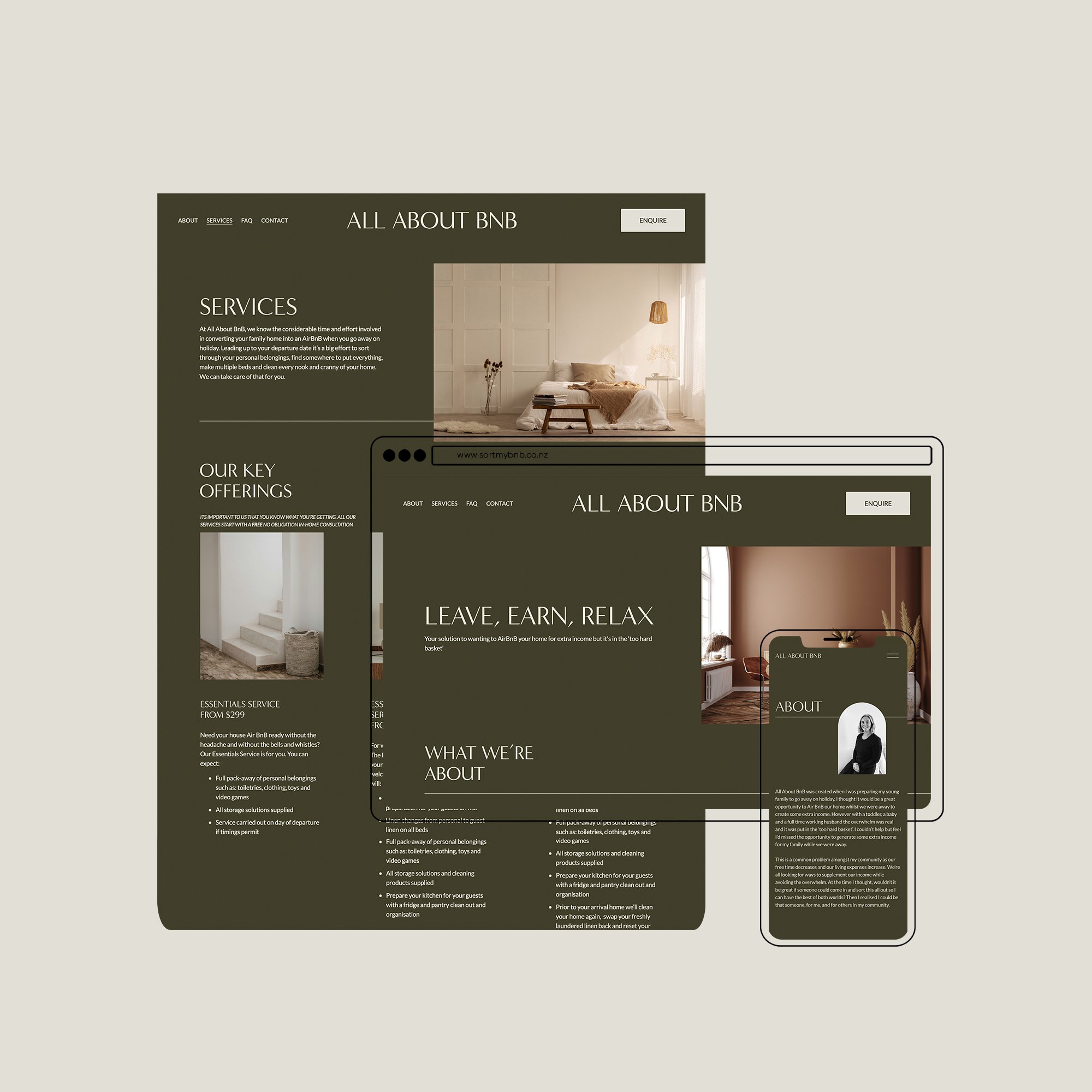Having identified a hole in the market — getting properties BnB ready for clients who want the extra income but don’t know where to start — Tory approached me translate this new service into a simple striking website.